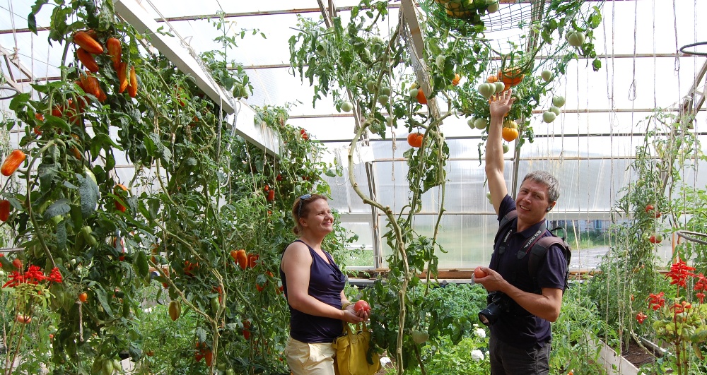 Вчера наши гости из Красноярска, Мария и Владимир, получили возможность подробно познакомиться с технологией круглогодичного выращивания органических продуктов в Солнечном био-вегетарии. Им подробно рассказали от технических особенностях СБВ, основных факторах урожая, системе пермакультурного выращивания, основах экологического земледелия и роли дождевых червей в сельском хозяйстве.