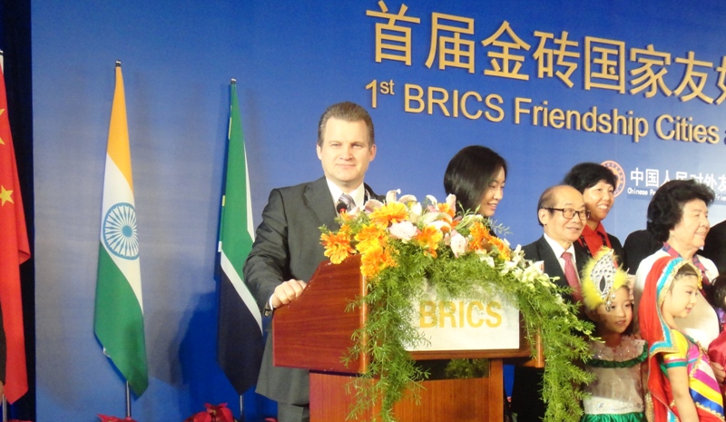 На церемонии открытия был сделан сюрприз: пятеро китайских школьников выступили с ярким концертом, в котором каждый ребенок в национальной одежде, как бы представлял одну из стран-участниц БРИКС. Было очень смешно видеть маленького китайца в косоворотке, изо всех сил изображающего русского мужичка, выплясывающего в присядку. В целом открытие было организовано очень торжественно на волне братской дружбы стран-членов БРИКС. Выступали послы государств, сенаторы, главы крупных международных организаций. Но больше всего поразил присутствующих своим приветственным словом посол России в Китае Сергей Сергеевич Разов, который сделал это на прекрасном китайском языке. Можно сказать, что он задал тон всем выступлениям, потому что, являясь глубоким ученым-китаистам, наш посол сумел точно сформулировать идеи дружбы и партнерства между народами России и Китая в интересах всех стран-членов БРИКС.